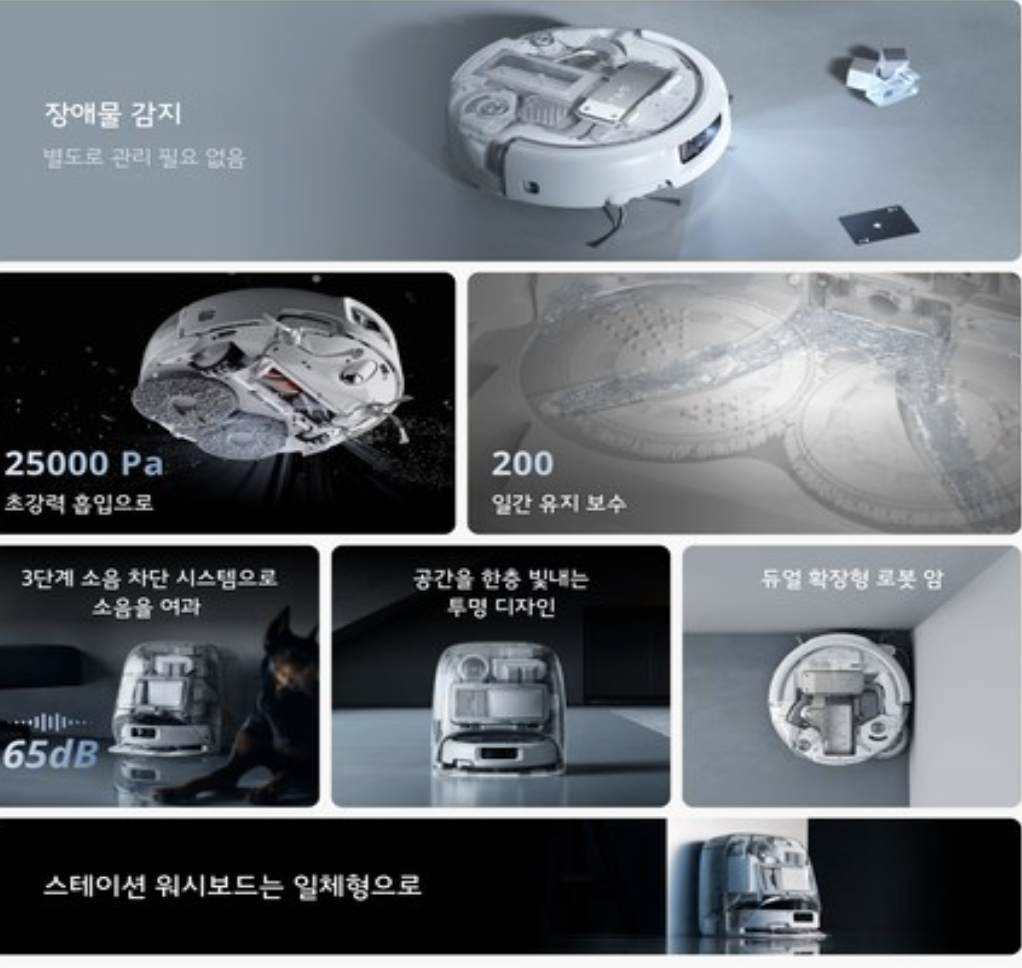 특히 자동 먼지비움 + 물걸레 기능 때문에